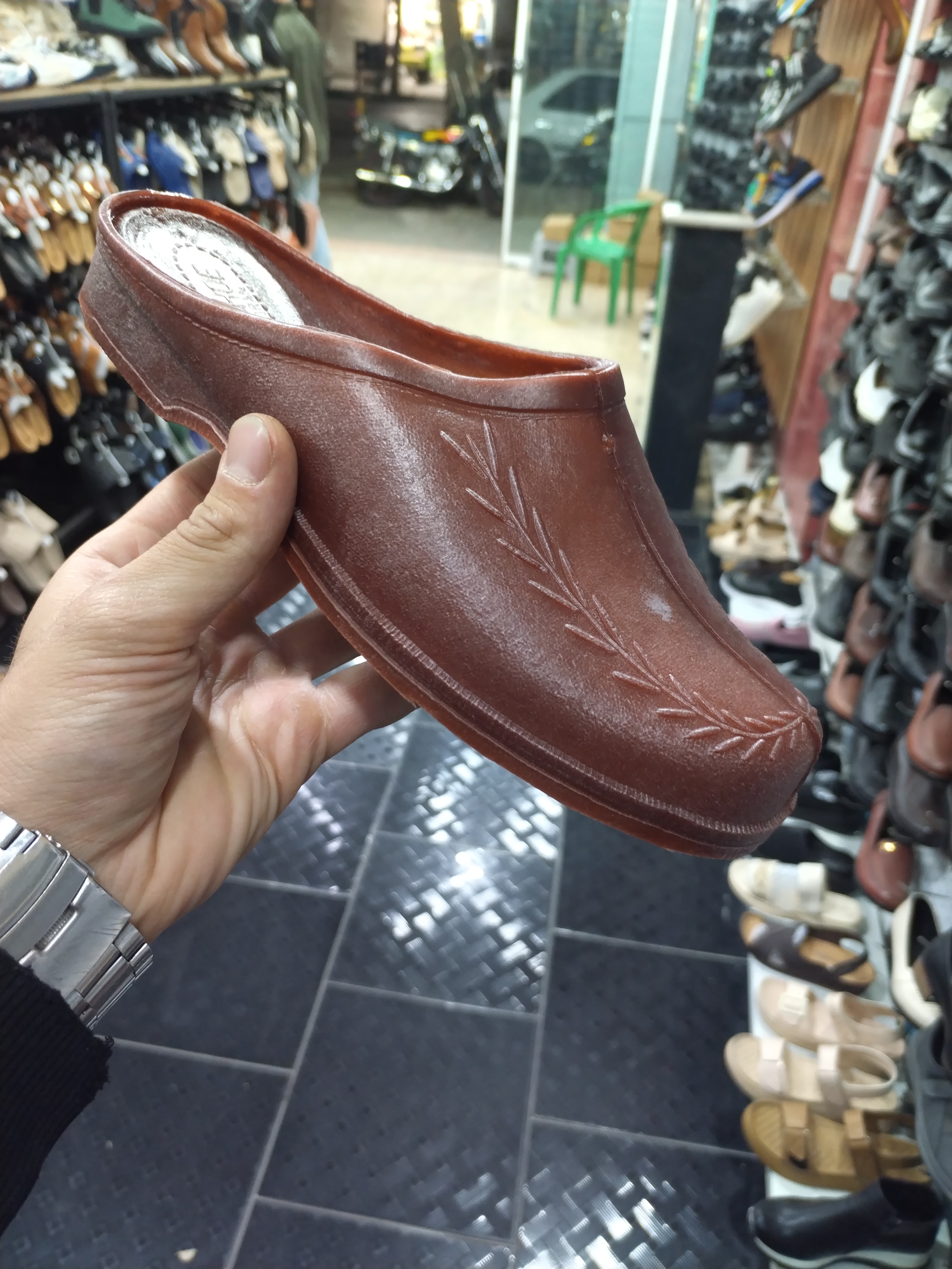 دمپایی جلو بسته قدیمی قهوه‌ای ملی جنس اصلی چارق سایز۳۷تا۴۲ بصورت کلی و جزئی