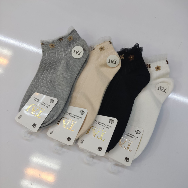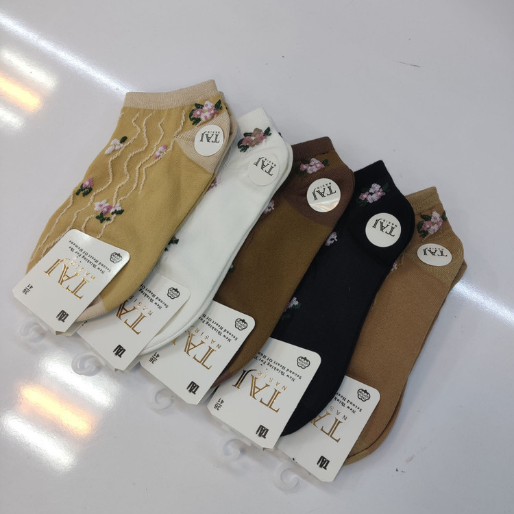 جوراب زنانه مچی مدل خاص، نخپنپه لب تور و ساده گلدار