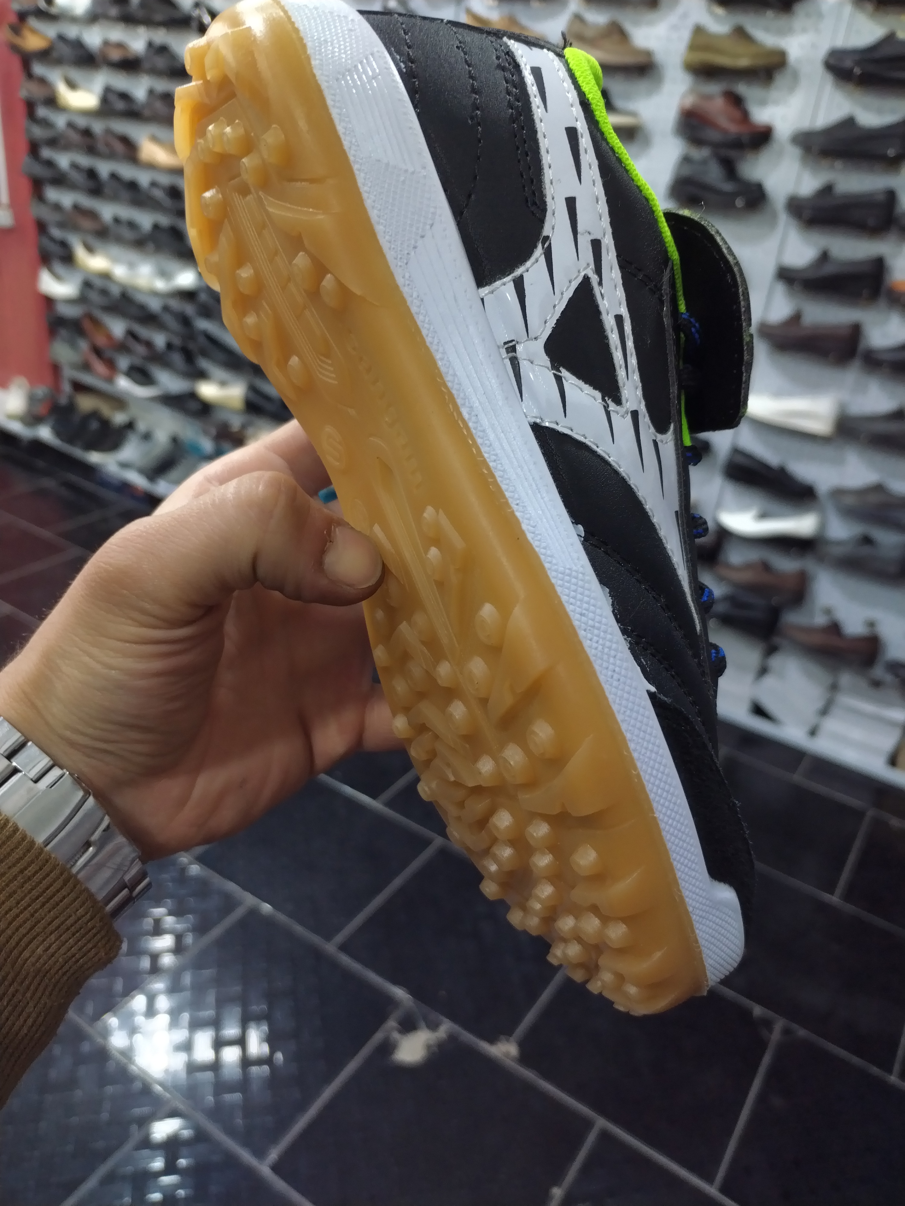 کاملاً تزریق شده زیره به رویه ی کار و بسیار محکم و بادوام هست کاملاً کفدوخت قابل شستشو ضد تعریق و ضدسُر وسایش مختص چمن مصنوعی و سالن و کفپوش تمام ضربه گیرها چرم میباشد..