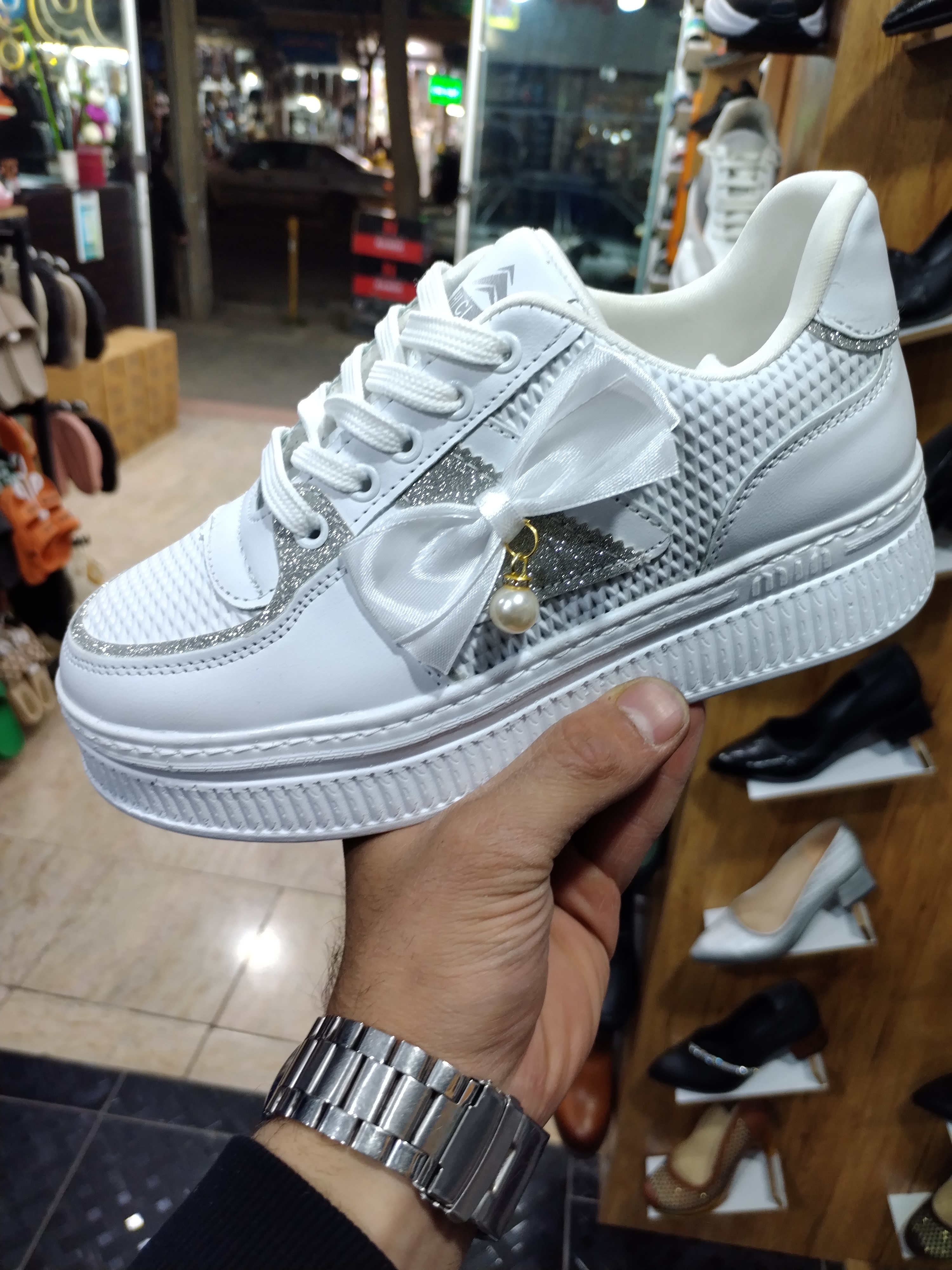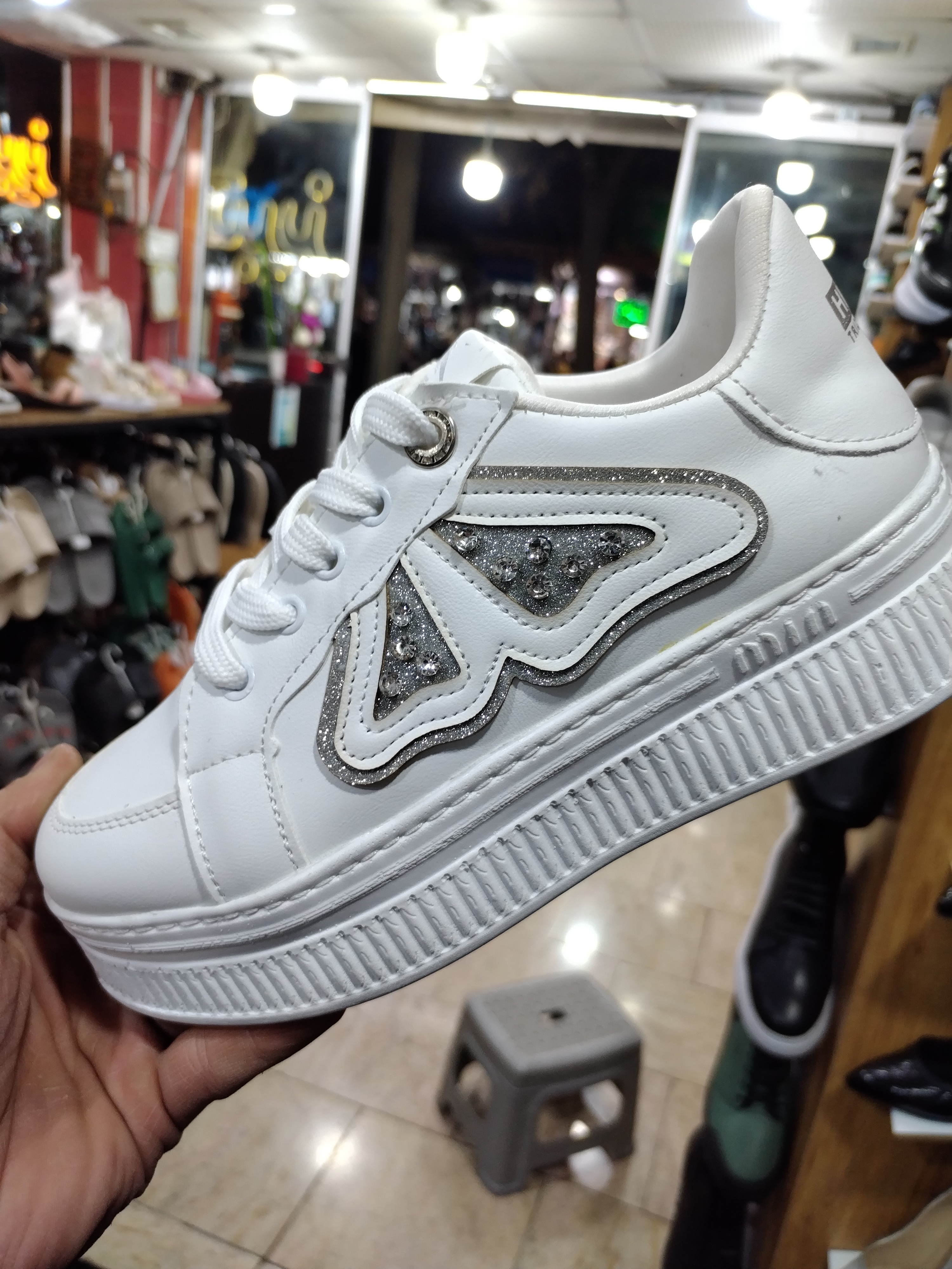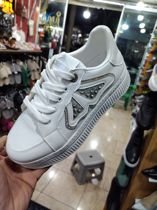 کفش اسپرت ونس سفید زنانه نگین دار طبی رسمی مدل خاص ۳۷ تا ۴۰