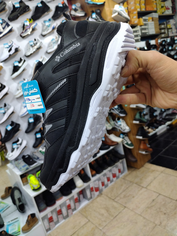 کفش اسپرت کلمبیا مشکی زیتونی و سفید تولید تبریز تزریق مختص کمپینگ و فشاربالا طبی ضمانتی کیفیت بالا ۴۱تا۴۵